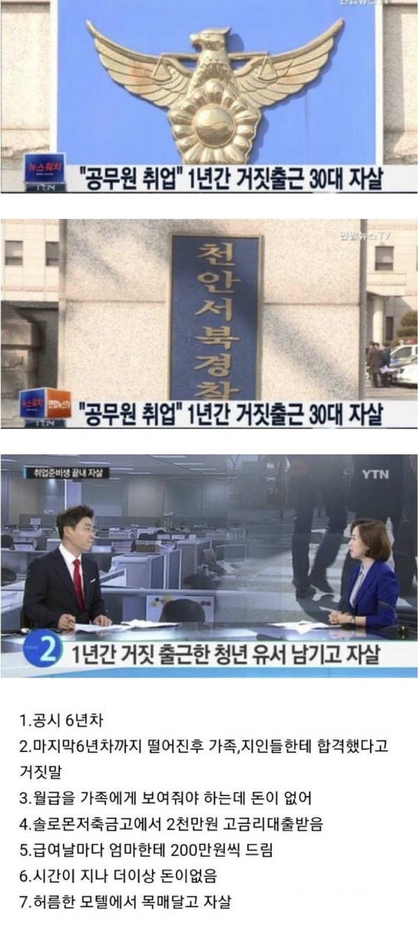 거짓출근으로 1년 버티고 자살한 30대...