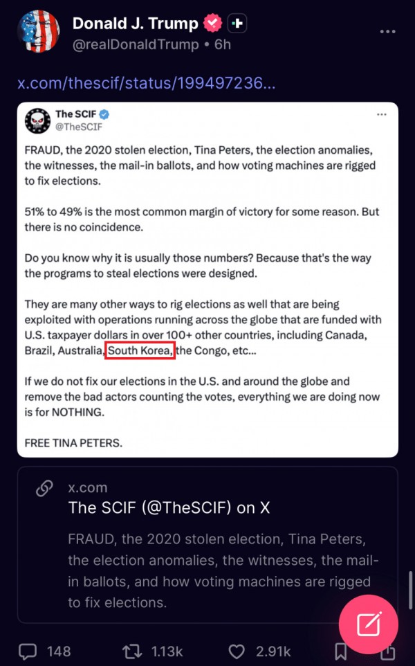 트럼프 " 한국 선거조작 했음 " 트위터 올림