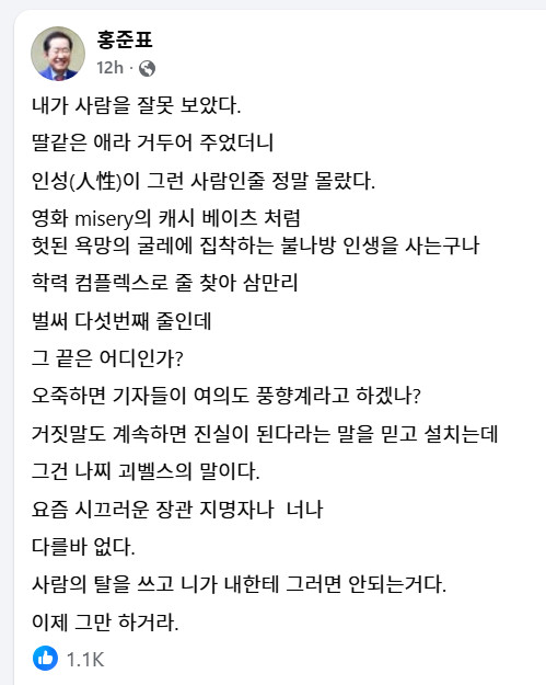 홍준표 격노, 배현진 저격.사람 탈을 쓰고 니가 나한테?