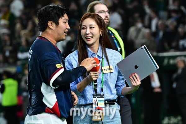 8강진출후 문보경과 미녀 아나운서.