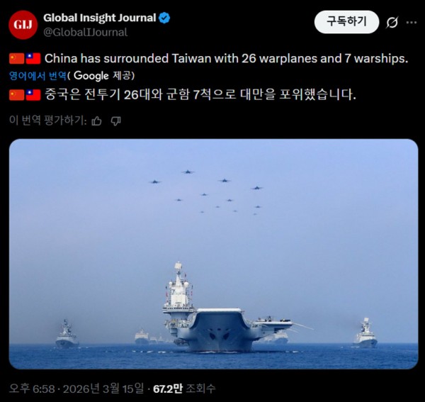속보) 3.16 대만 포위중인 중국...